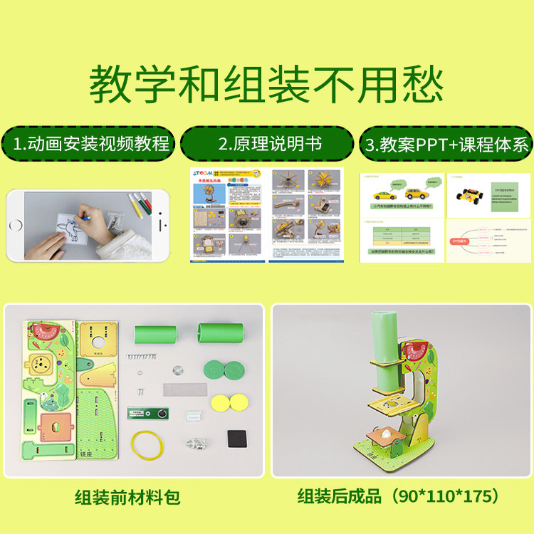 科技小制作diy材料手工显微镜模型科学实验器材拼装教学仪器玩具