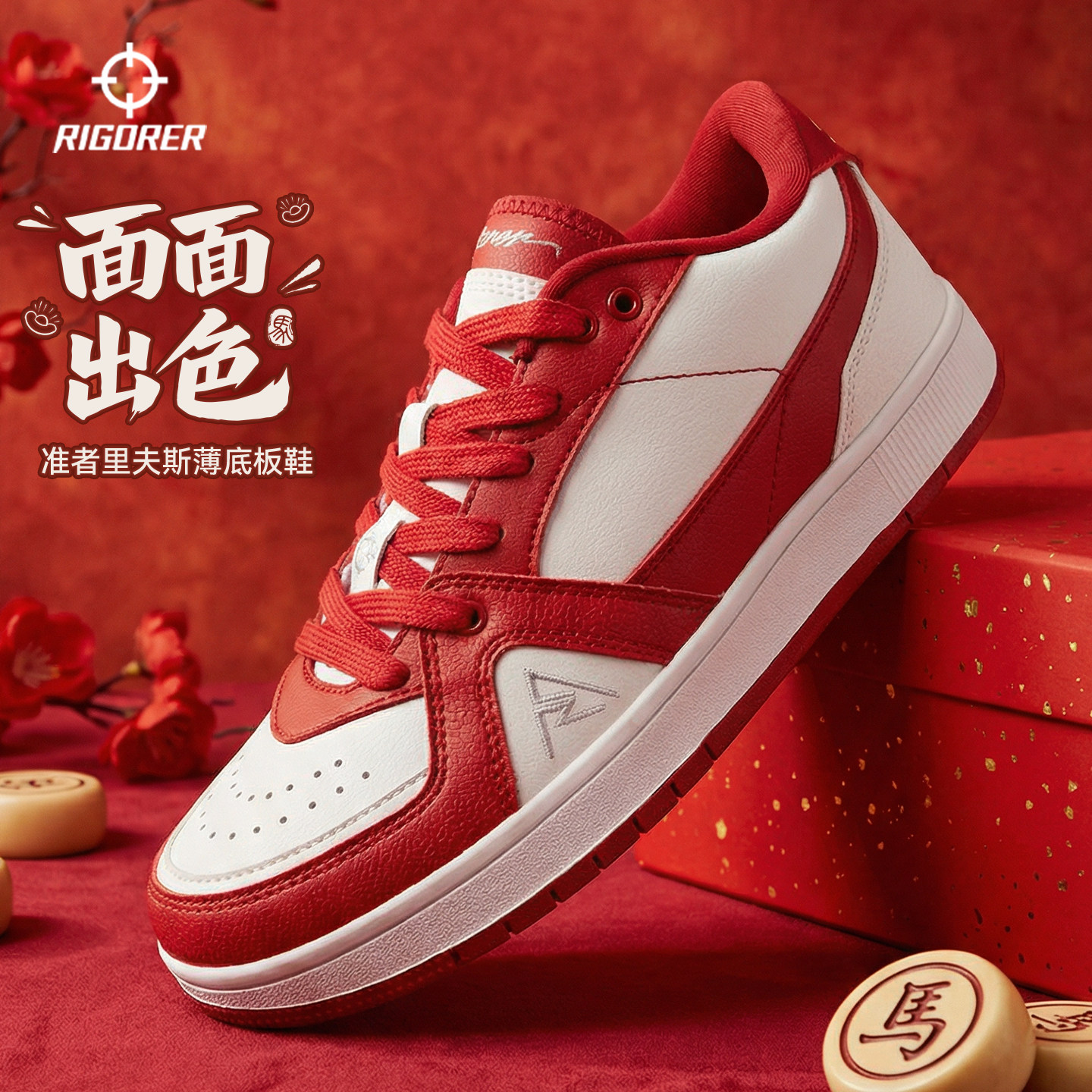 准者板鞋潮流薄底黑白经典里夫斯同款低帮革面滑板鞋运动鞋休闲鞋