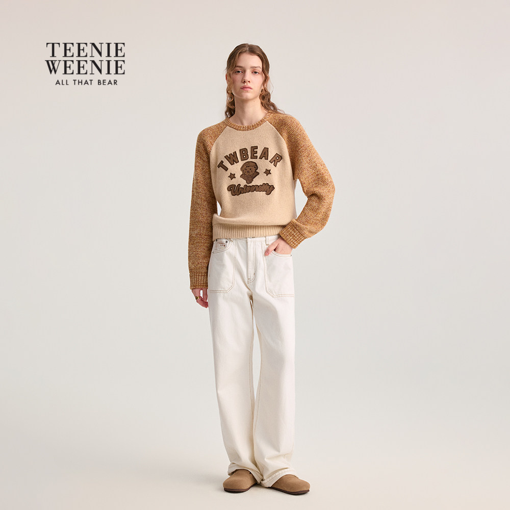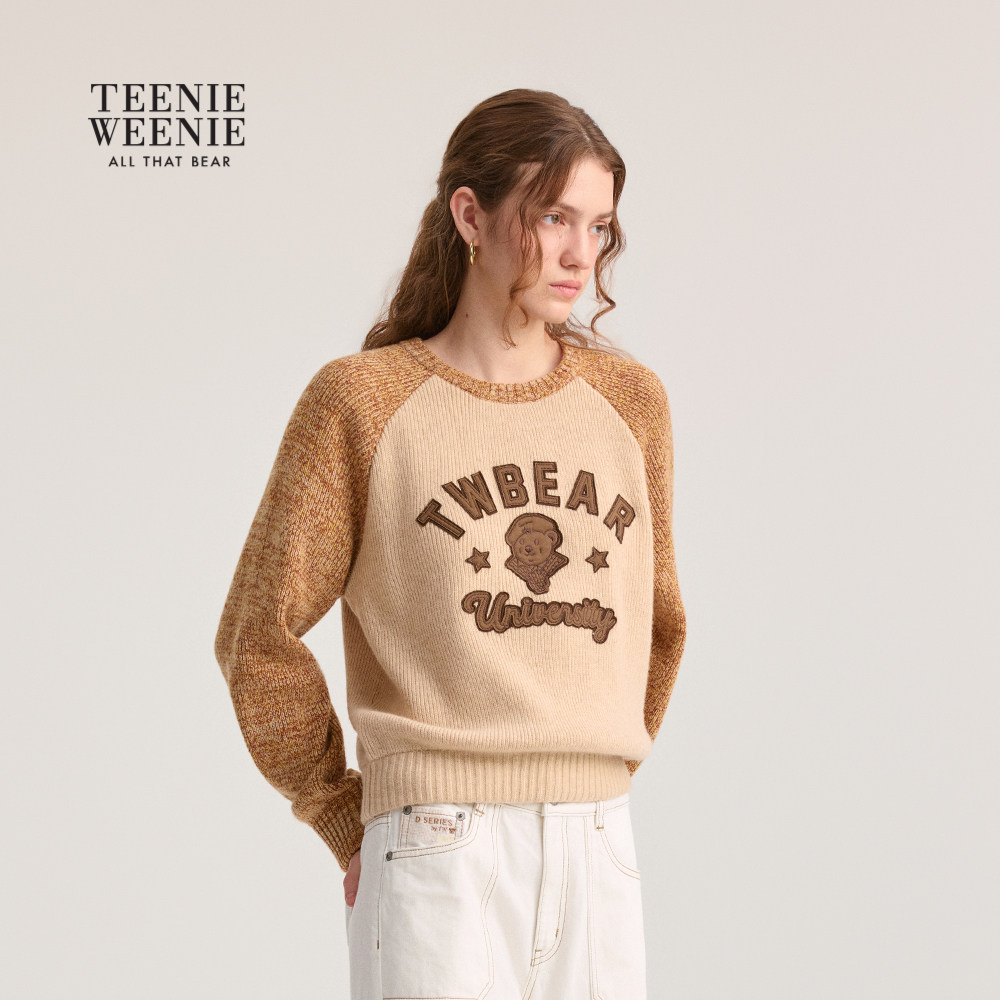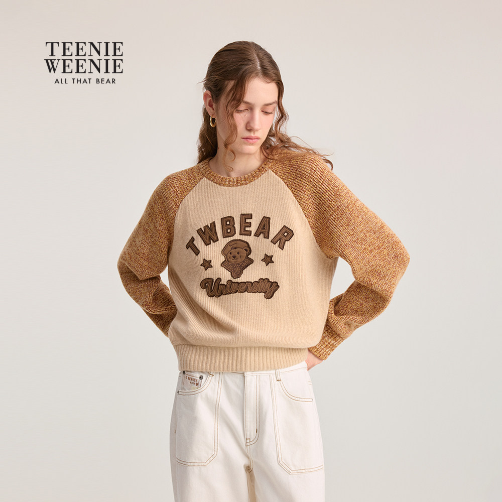 【含绵羊毛】TeenieWeenie小熊女装毛衣秋冬季插肩袖圆领针织衫