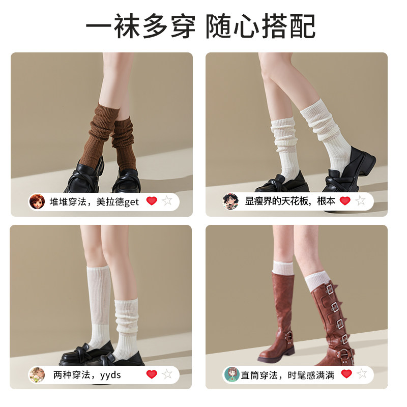 小腿袜女纯棉长筒堆堆袜套显瘦jk中筒袜搭配小皮鞋春秋新款薄腿套