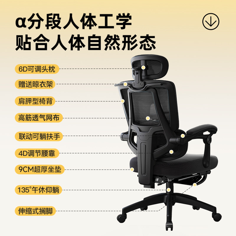 人体工学椅护腰电竞椅家用舒适久坐电脑椅办公室座椅可躺靠背椅