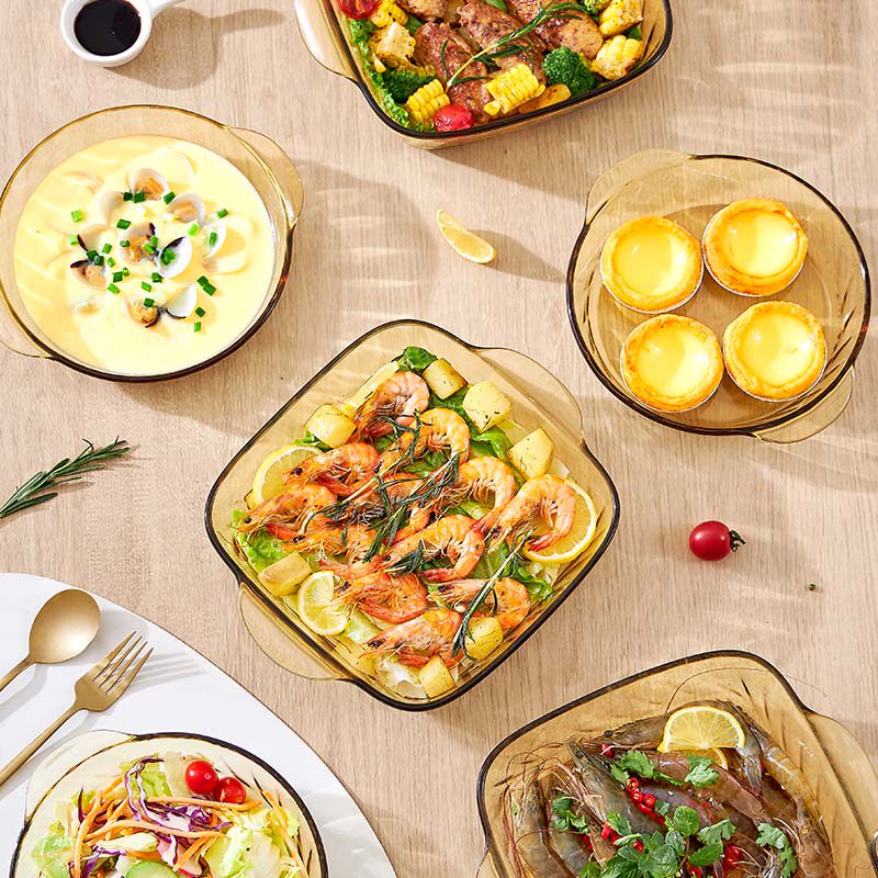 康宁晶炫玻璃蒸烤盘高硼硅透明琥珀色家用烤箱餐盘沙拉烘焙焗饭碗