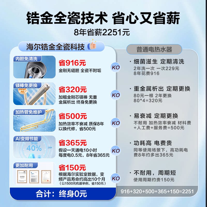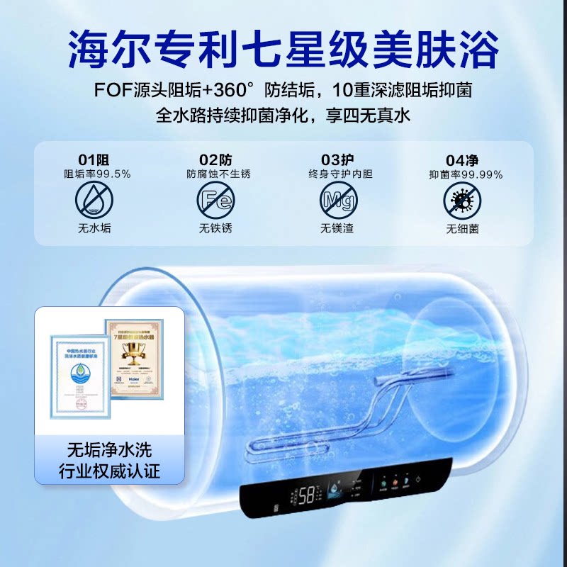 国补海尔电热水器电家用节能一级能效60L卫生间洗澡统帅净水洗DN3