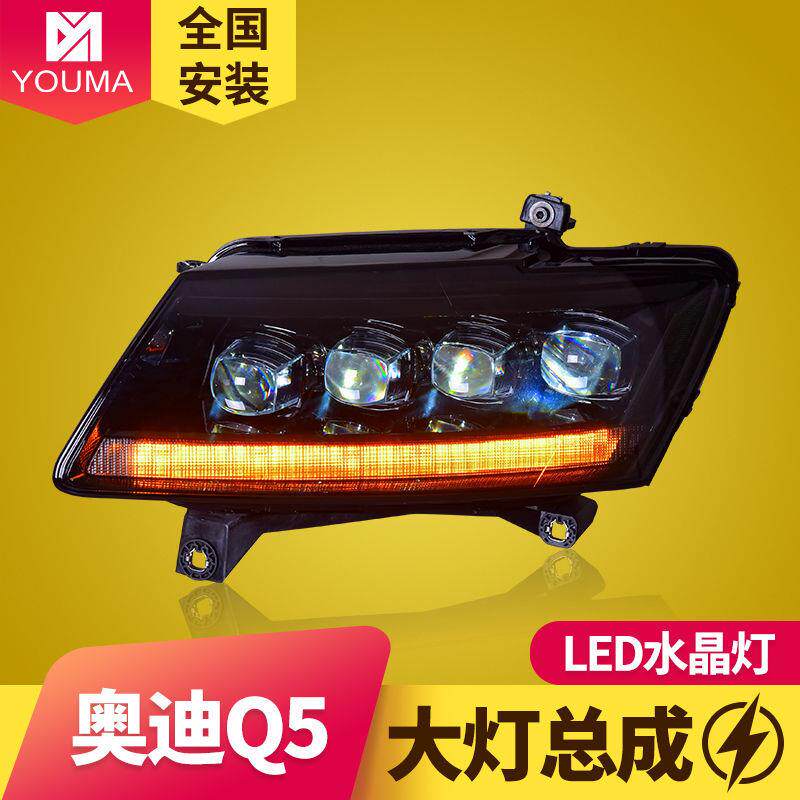 专用于奥迪Q5大灯总成10-18款改装LED日行灯流水转向LED透镜大灯