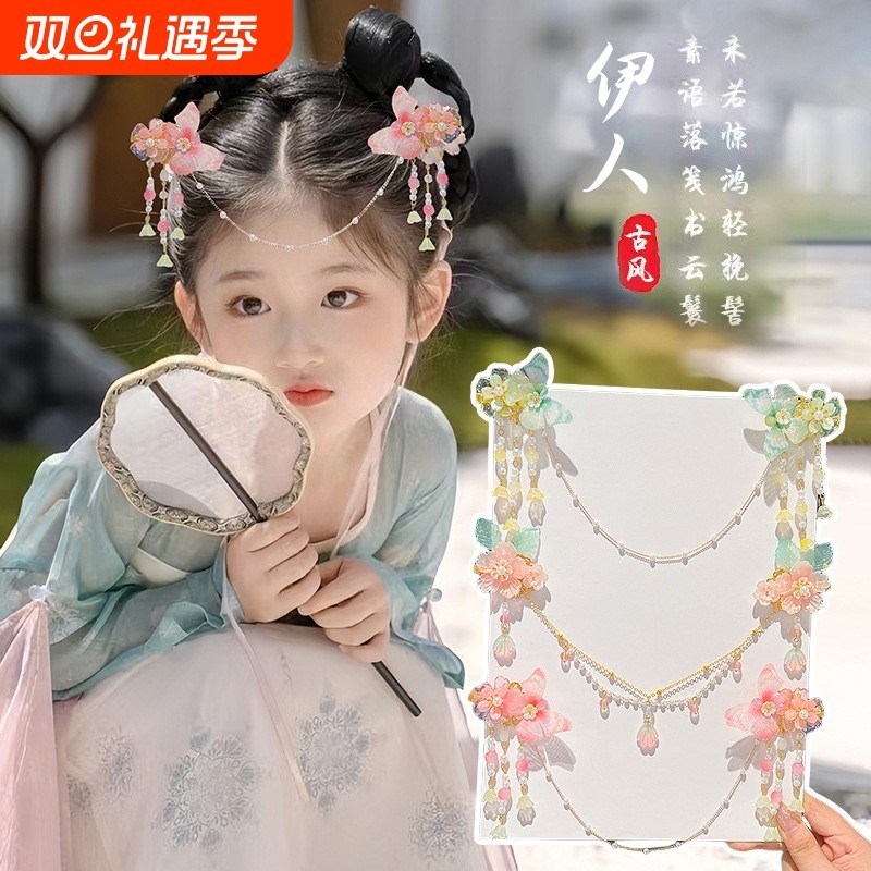 儿童古风汉服头饰女童中国风超仙发卡公主额头链发饰古装流苏发夹