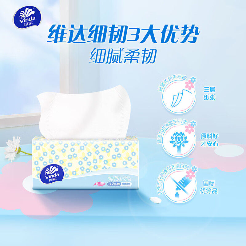 维达细韧抽纸130抽整箱装纸巾家用餐巾纸面巾纸抽卫生纸巾实惠装