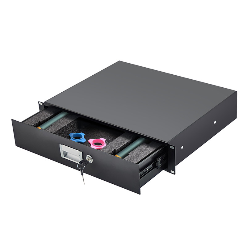 2U金属带锁带话筒保护棉无线麦克风19英寸标准机柜抽屉航空箱配件