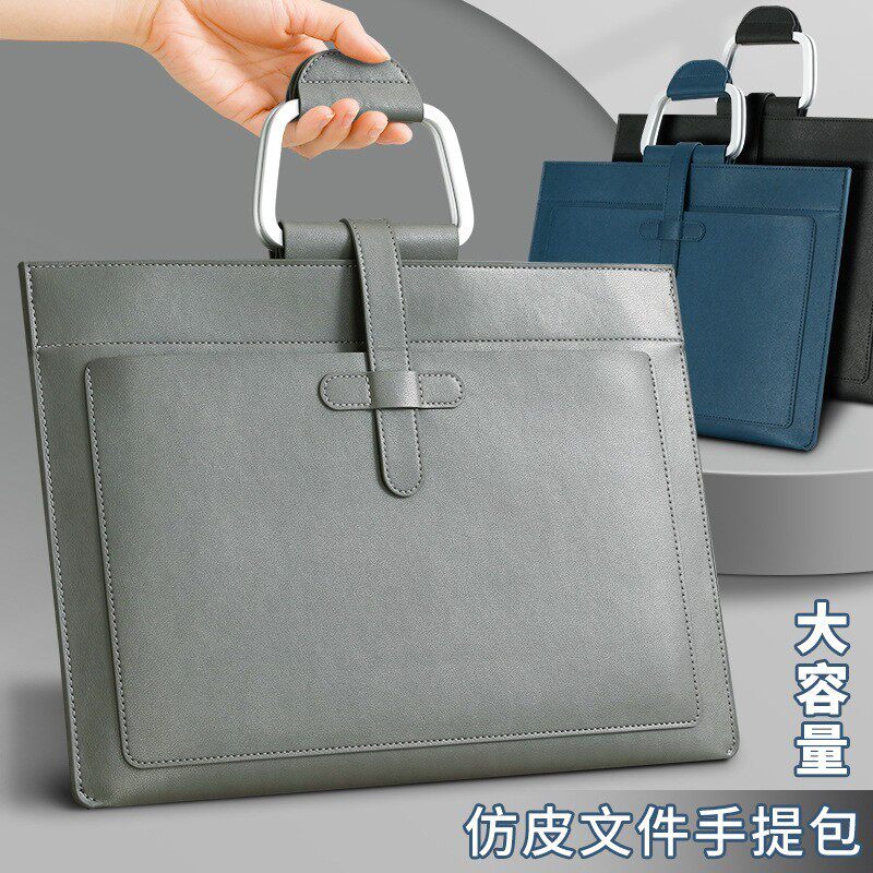 商务容量文件袋手包资料收纳电包PU皮大豪册质办脑公提收纳档案袋