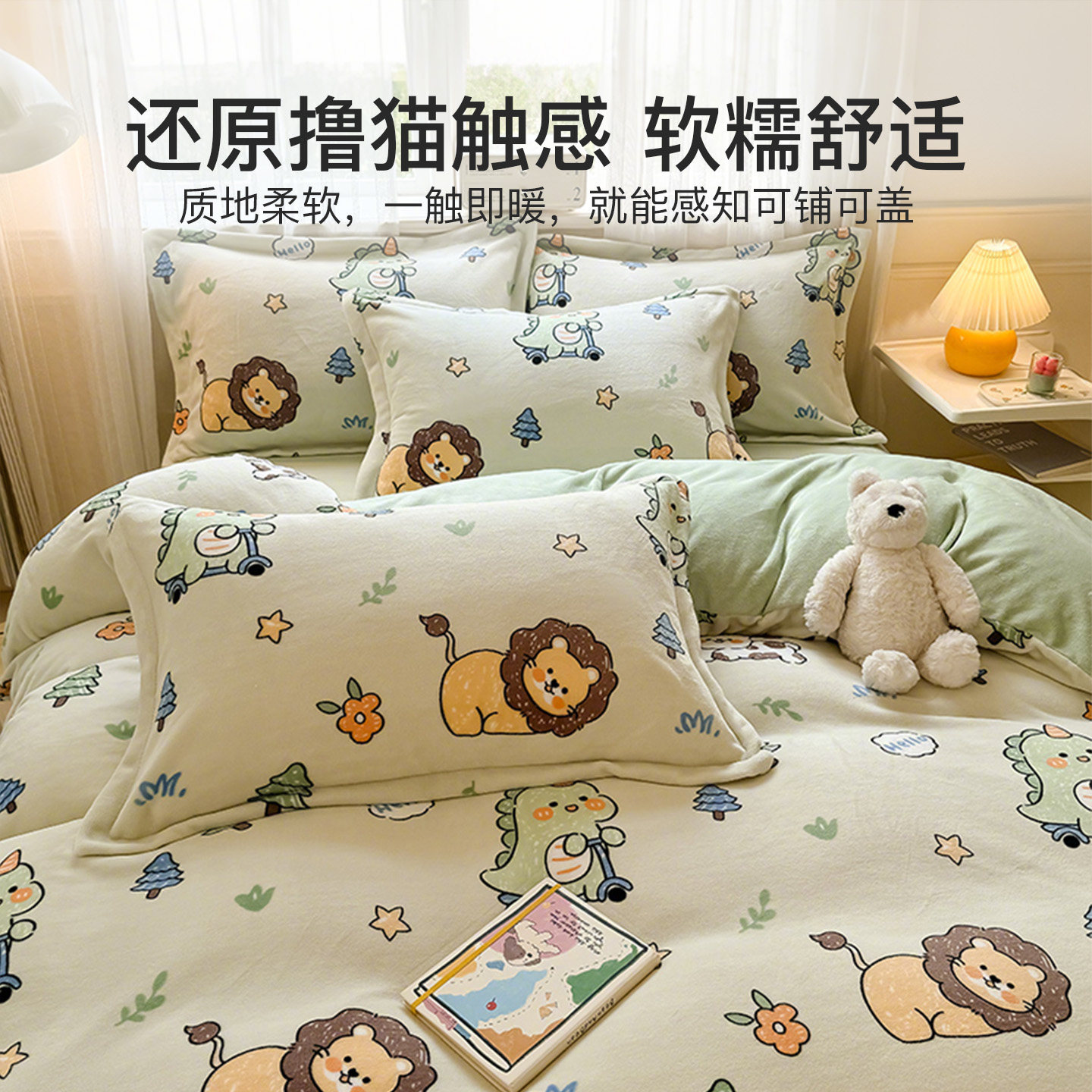 洁丽雅牛奶绒四件套冬季珊瑚绒被套床单加绒毛绒法兰绒床上三件套