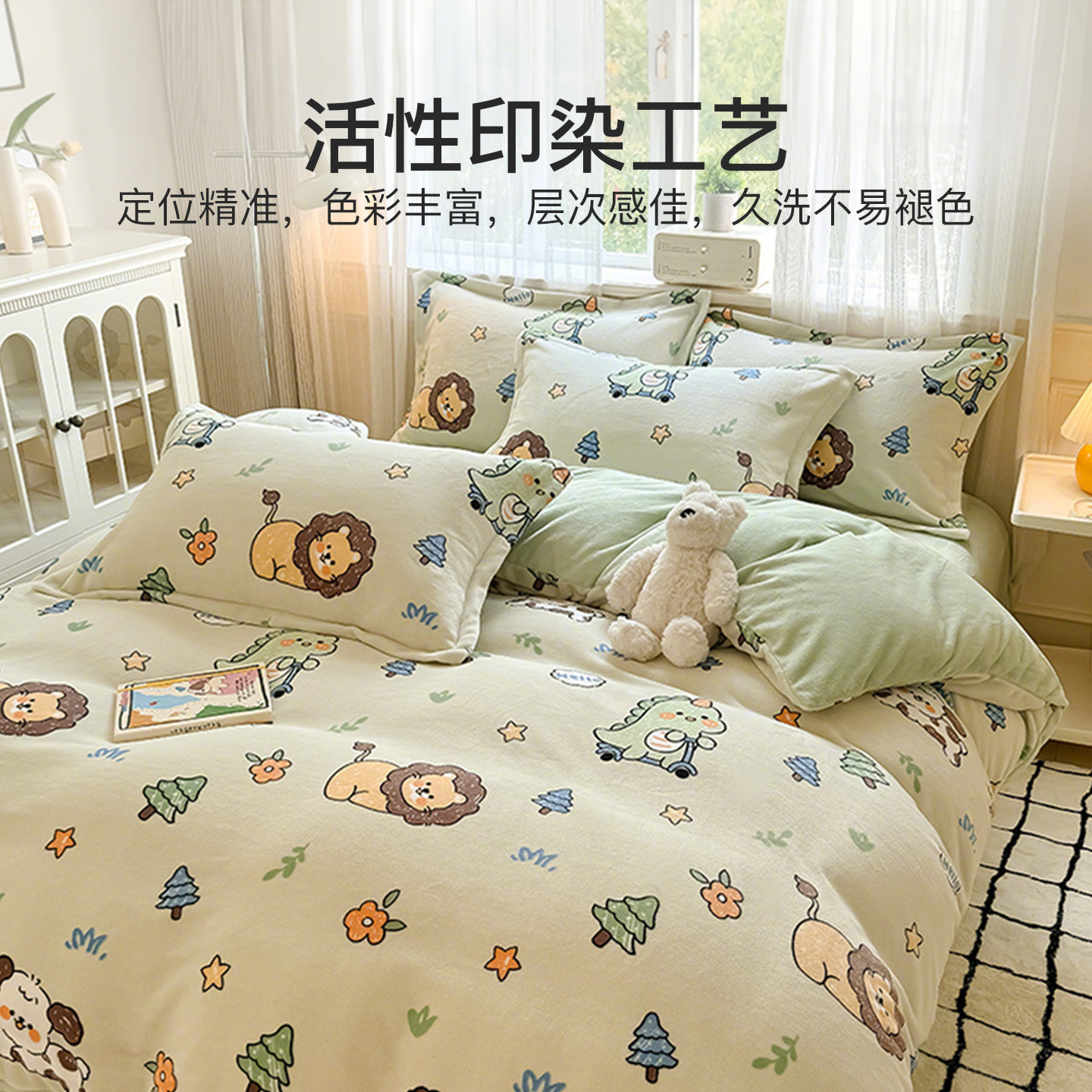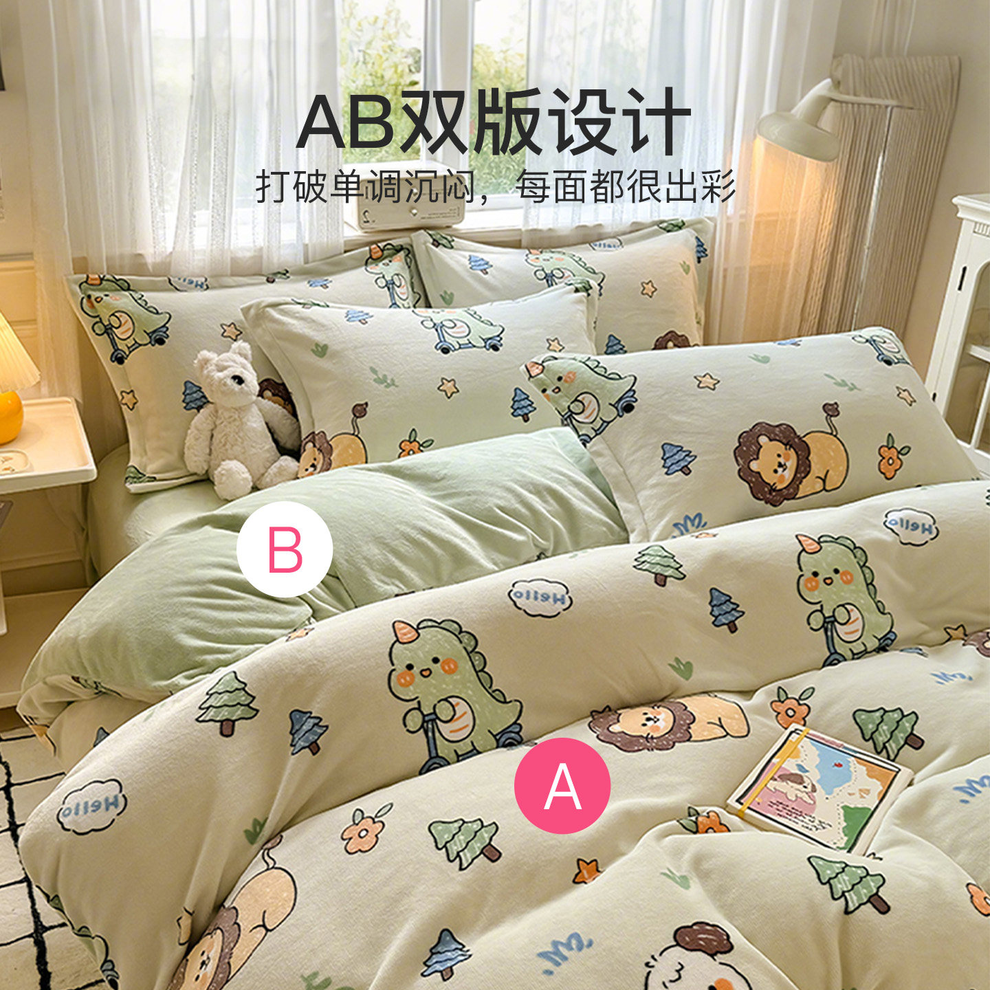 秋冬季加厚四件套牛奶绒被套床单双面加绒被罩床笠学生宿舍三件套