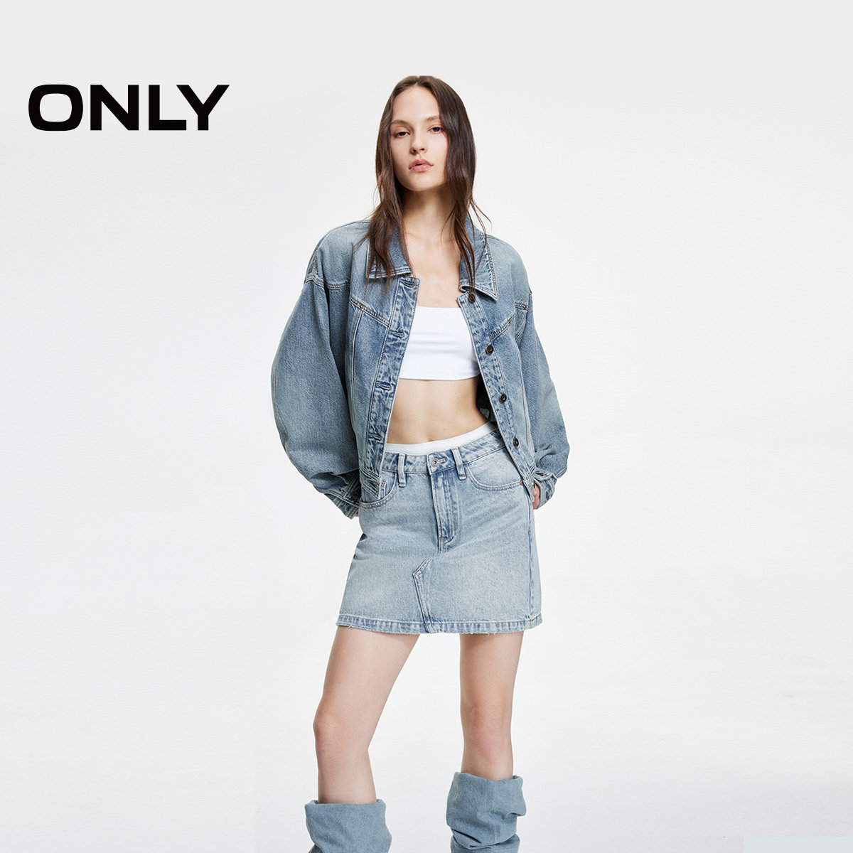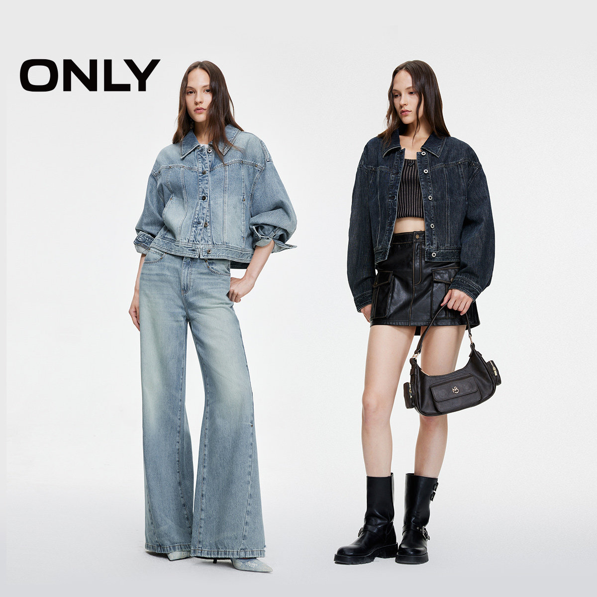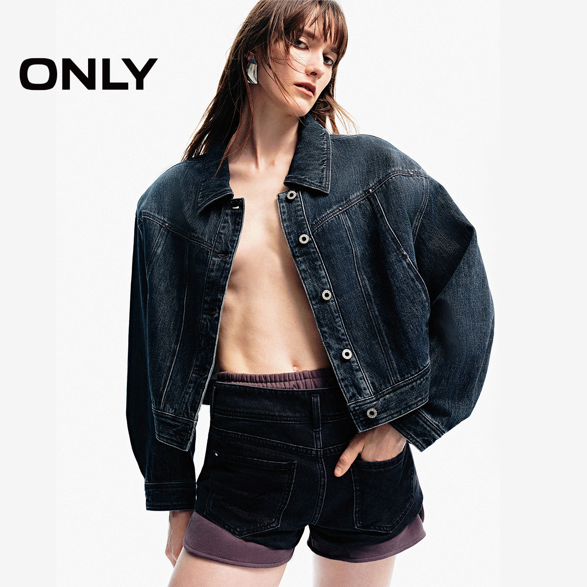 【ONLY奥莱】春季新款时尚复古做旧朋克风翻领牛仔短外套女