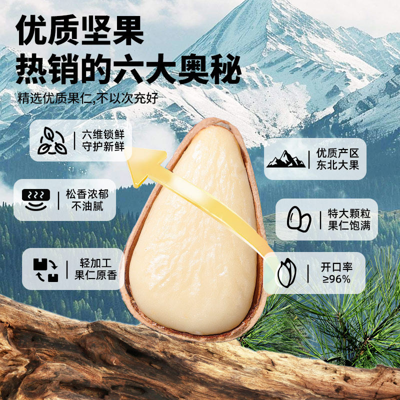2025东北纯野生开口松子500g新货特大手剥松籽散装大颗粒手拨坚果