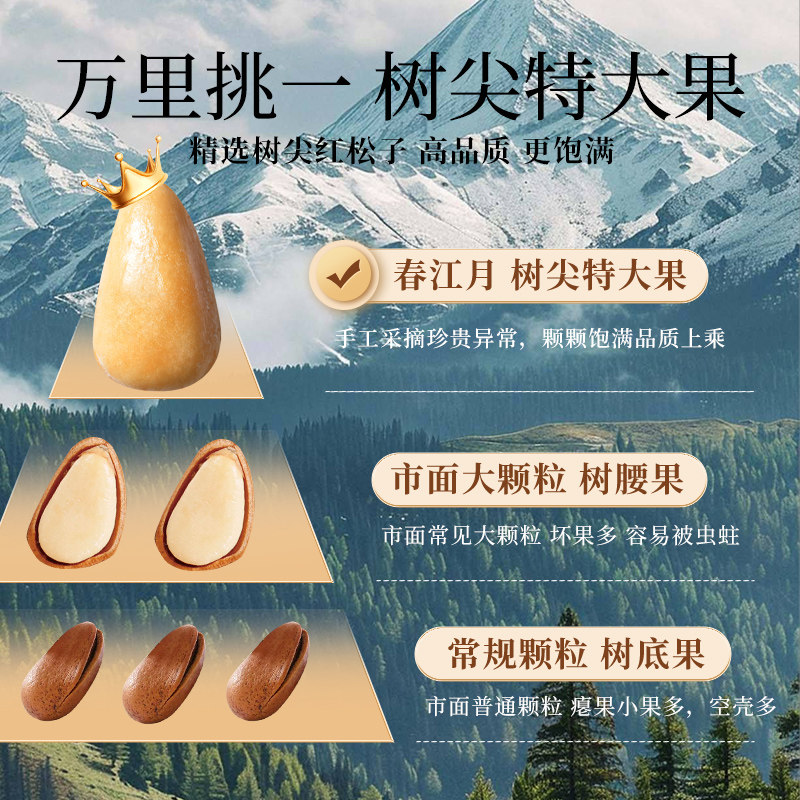 春江月特大颗粒950级东北松子25年新货开口手剥红松原味年货坚果