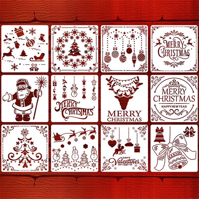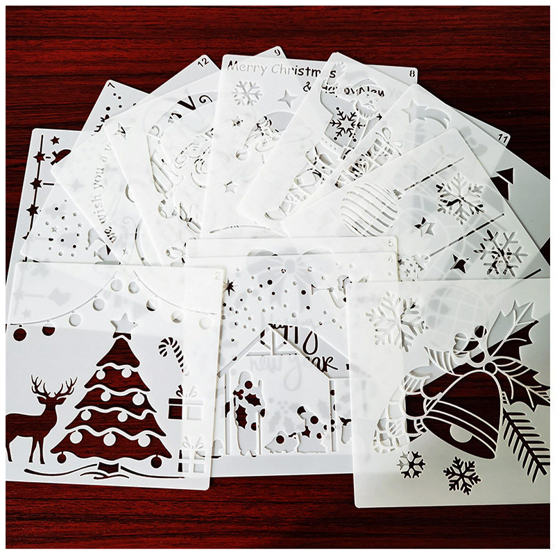 新款圣诞主题喷绘镂空模板节日彩绘涂鸦DIY绘画儿童辅助工具模版