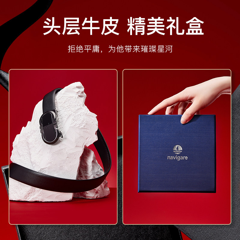 【送男朋友的礼物】Navigare意大利小帆船牛皮腰带男士自动扣皮带