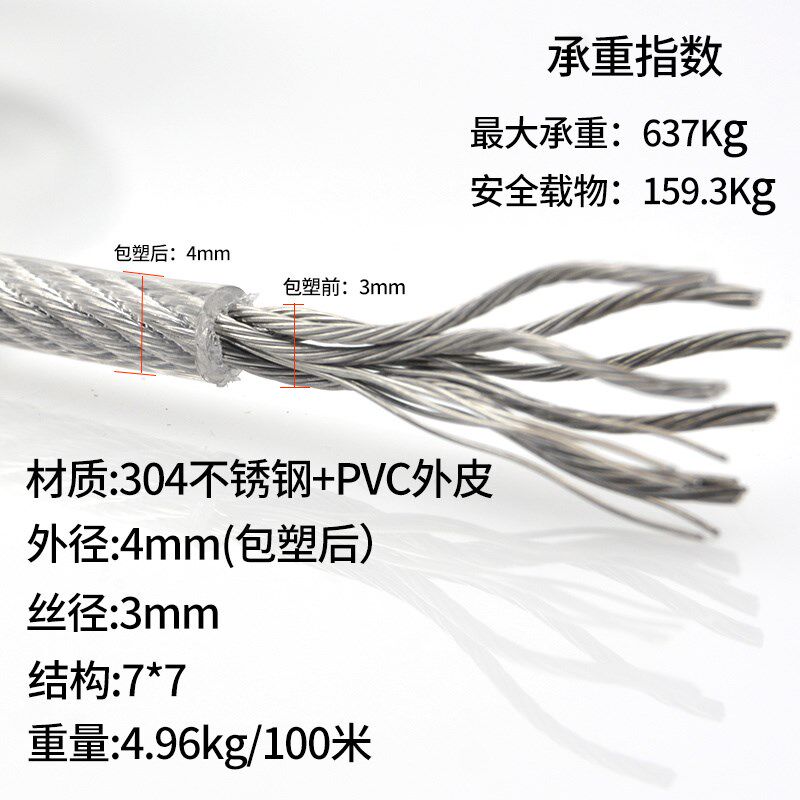 304不锈钢钢丝绳包塑超细软钢丝线包胶晾衣绳子大棚遮阳网葡萄架