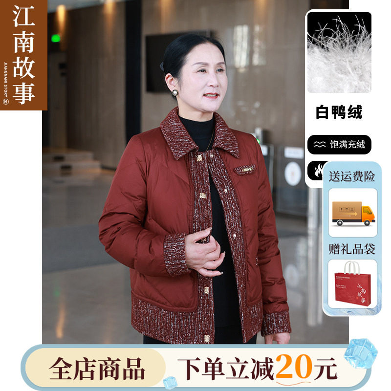 【24小时现货发】江南故事妈妈羽绒服冬90白鸭绒加厚保暖洋气外套