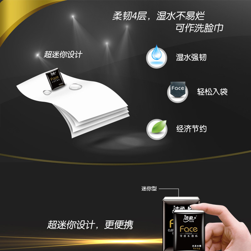 洁柔手帕纸小包纸巾古龙水香手帕纸超迷你4层6片24包便携式餐巾纸