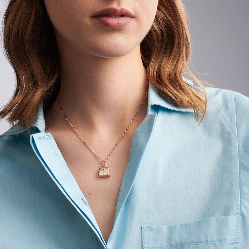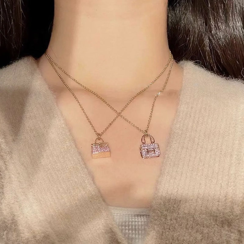 高版本S25银新款H字母锁骨链莫桑石满钻吊坠女士高级感包包项链