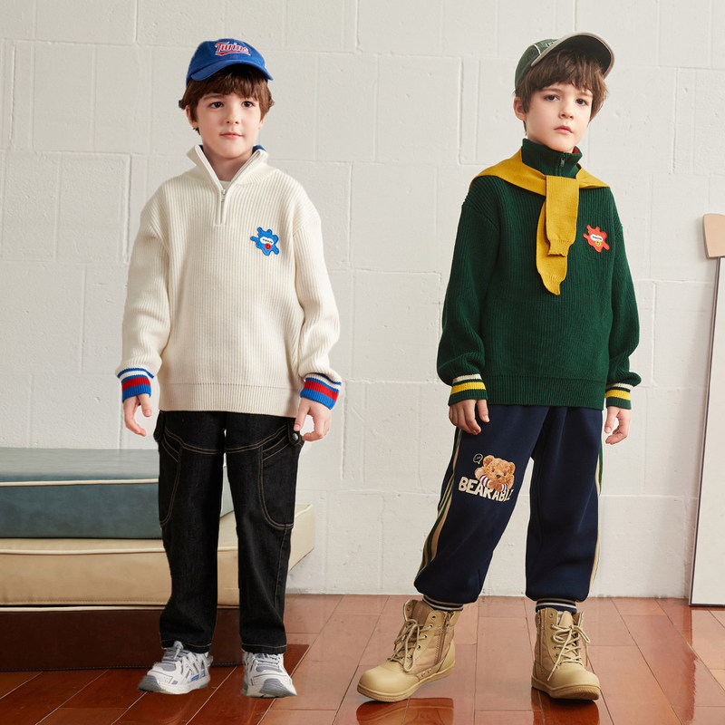 [VIP]MQD童装男童半开襟毛衣加厚翻领儿童针织衫秋冬儿童保暖上衣