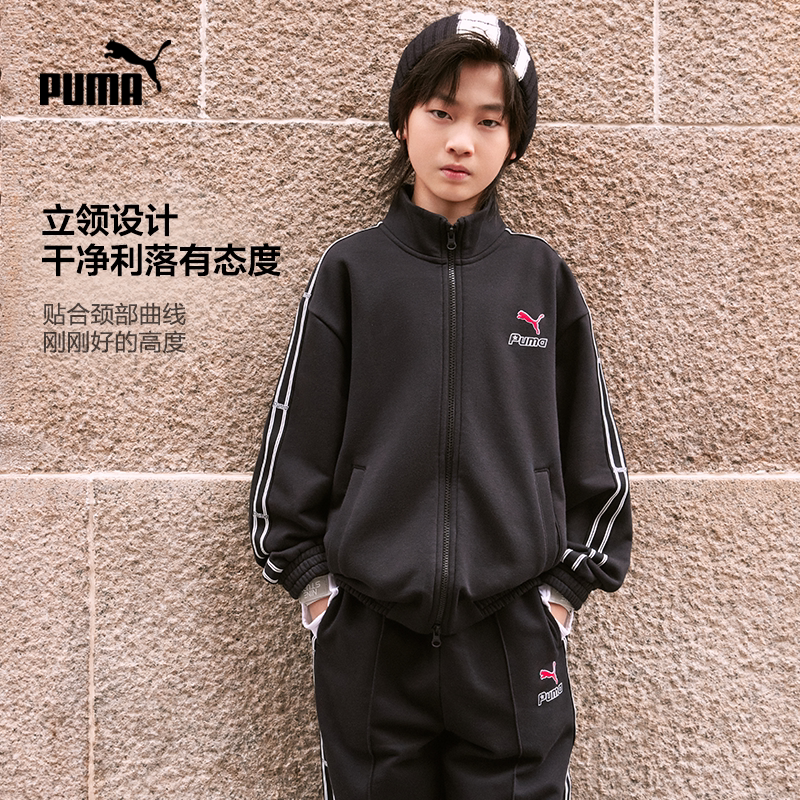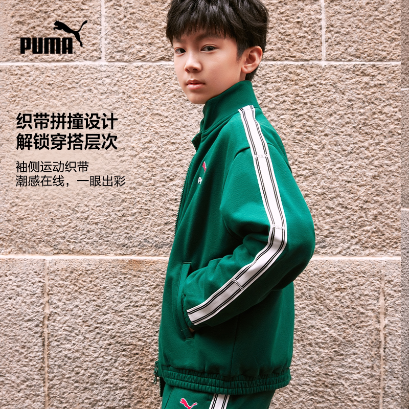 PUMA彪马童装新款男女童拉链外套拼接洋气夹克T7条纹设计秋装