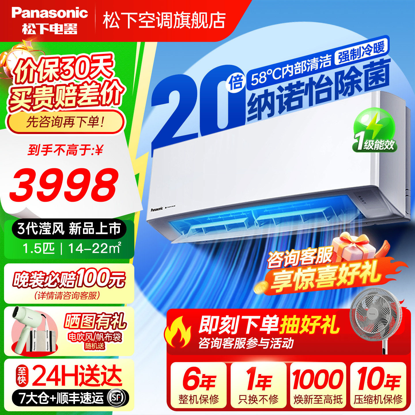 【国补20%】松下空调三代滢风1.5匹新一级能效变频挂机JM35K410Q