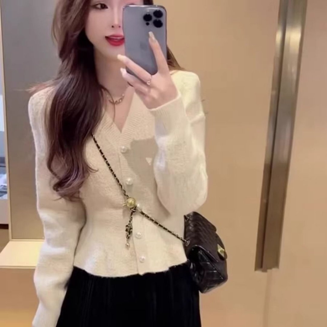 小香风红色毛衣外套女秋冬大码内搭新款气质显瘦针织开衫上衣