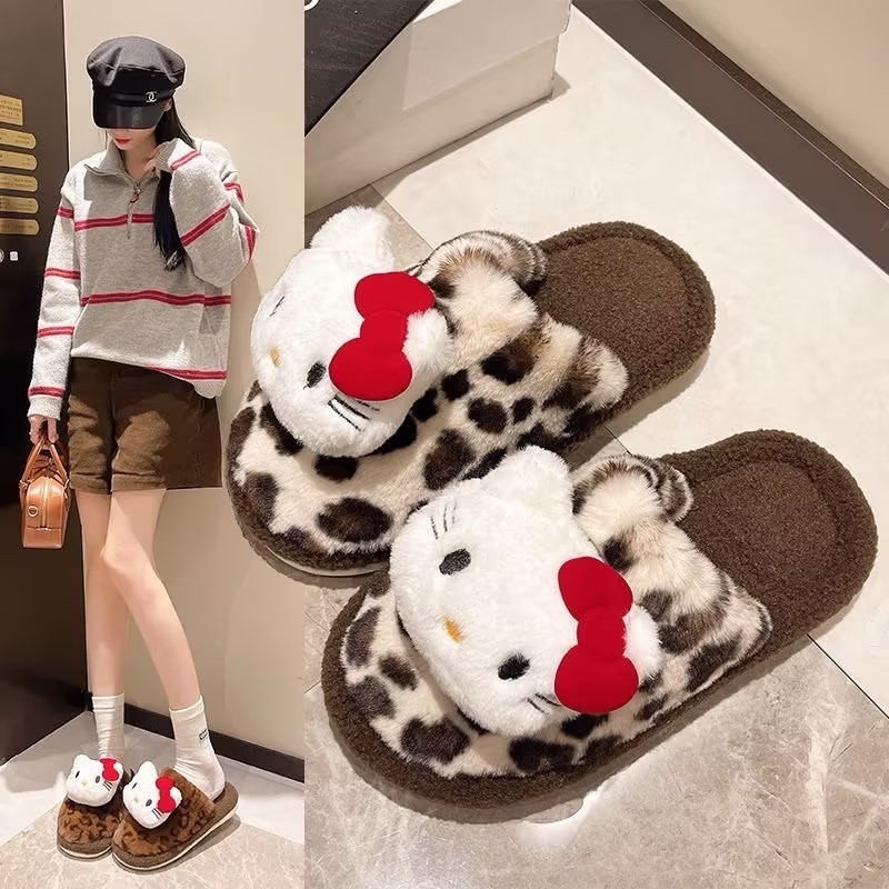 哈喽kt居家棉拖鞋秋冬季可爱毛毛拖鞋毛绒防滑防臭室内2025新款
