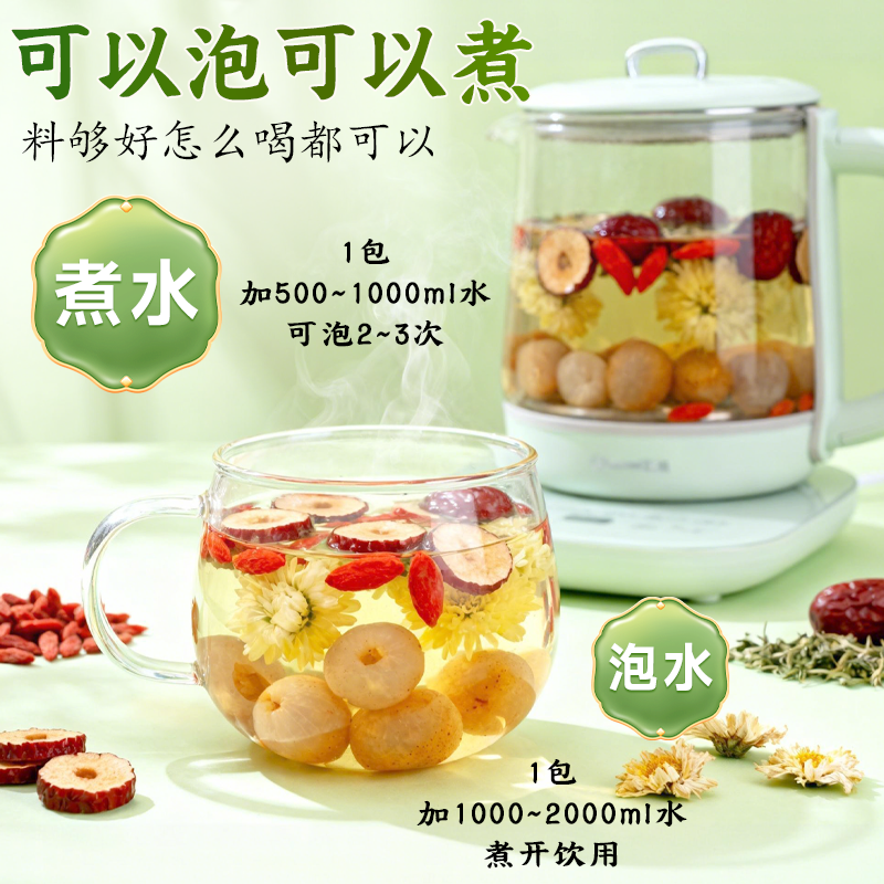黄芪灵芝党参红枣桂圆组合枸杞茶补八宝茶花茶养女人气血茶养生茶