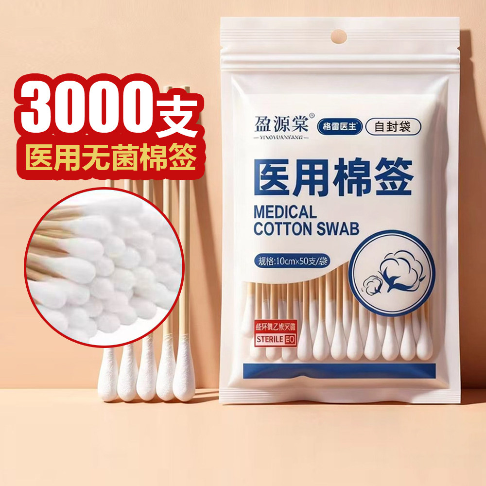 医用棉签一次性新生婴儿掏耳鼻屎消毒脱脂棉球超细双头棉花棒家用