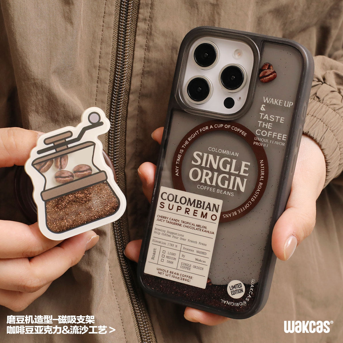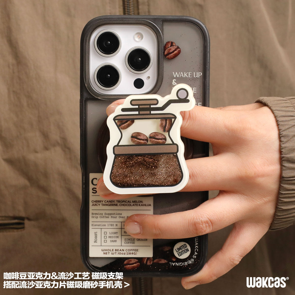咖啡磨豆机磁吸手机支架原创小众流沙个性创意磁吸手机支架新款