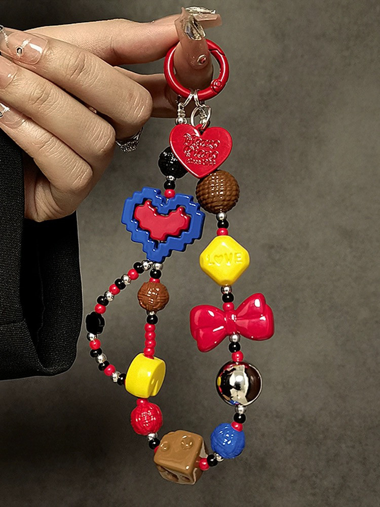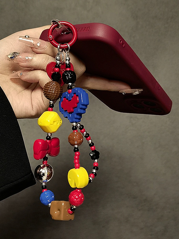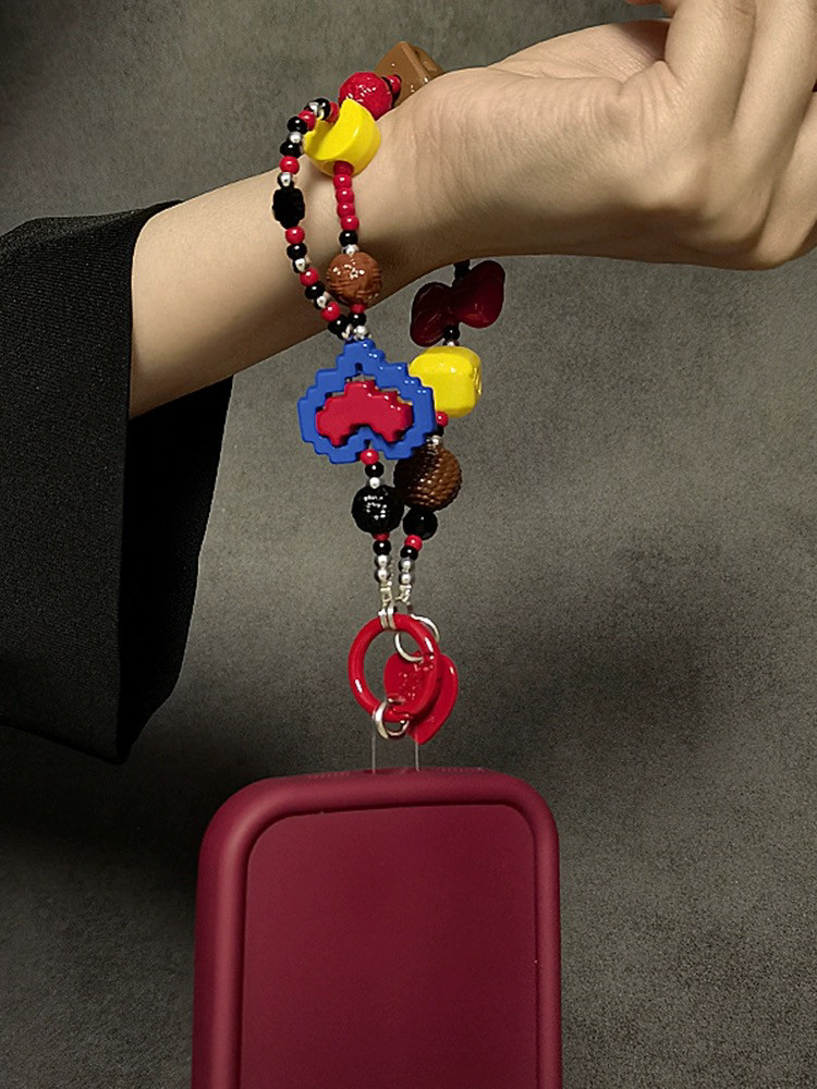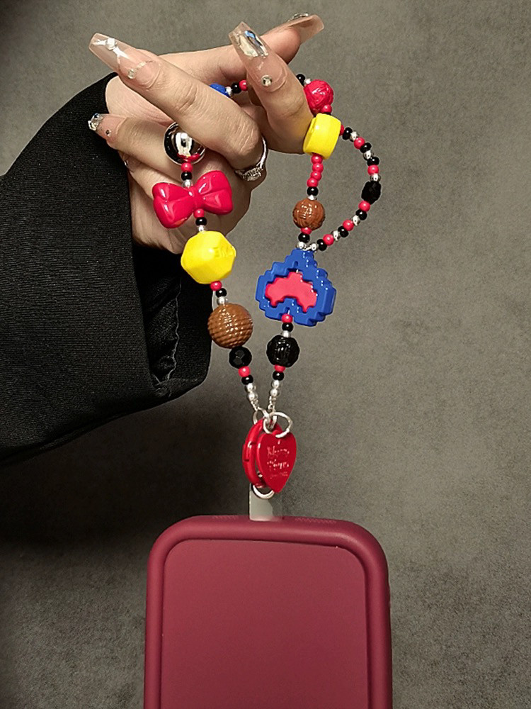 芭比手机挂件黑粉色链条ins风甜辣妹串珠手链多巴胺手腕挂饰配件