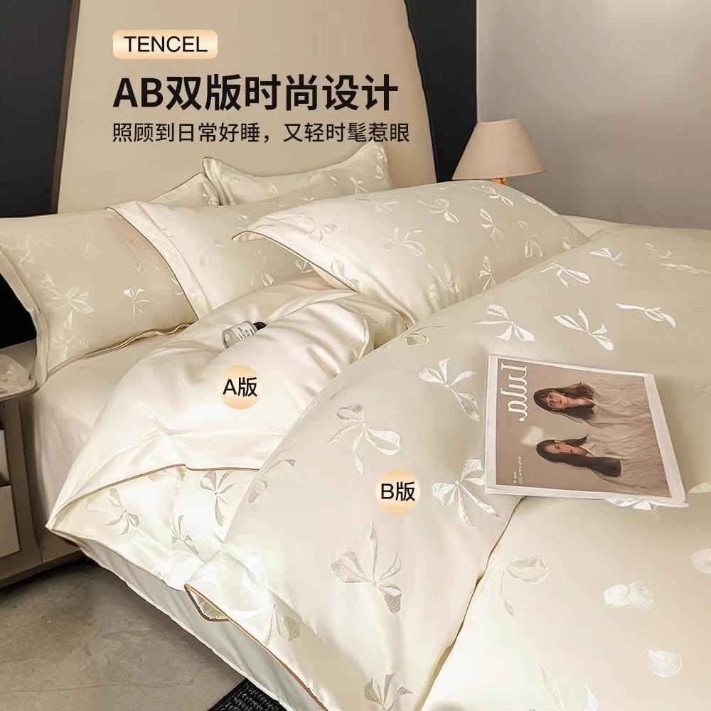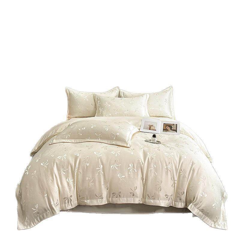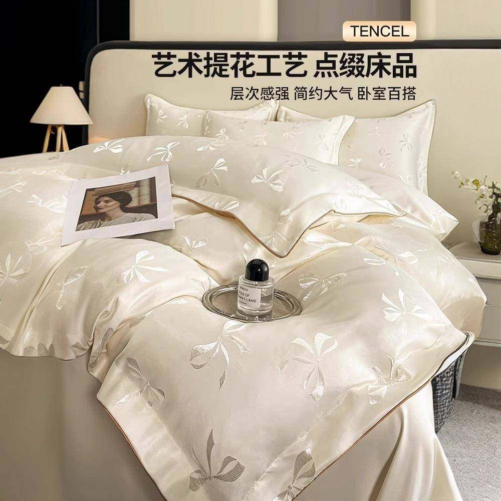 夏季水洗冰丝蝴蝶结提花四件套丝滑裸睡床上用品轻奢高级被套床单