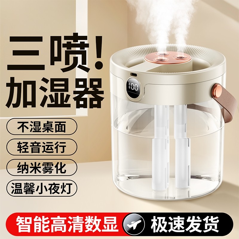 2025新款加湿器静音三喷大雾量小型办公室桌面迷你卧室家用孕妇婴儿车载专用空气净化大容量保湿器喷雾氛围