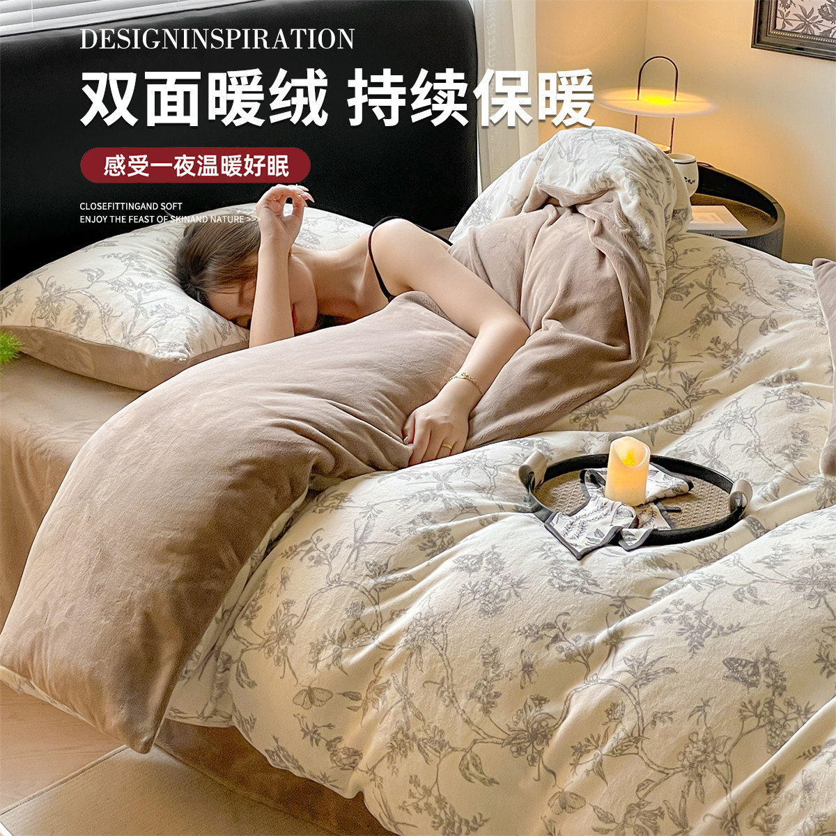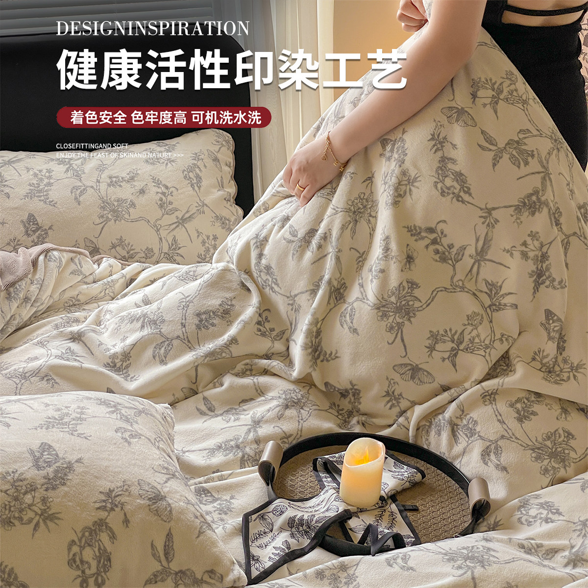 无印良品冬季牛奶绒床上四件套2025新款珊瑚绒床单被套床品三件套