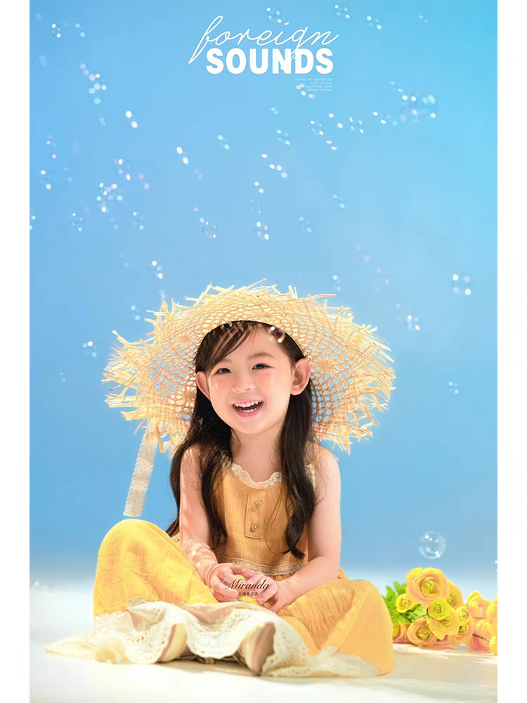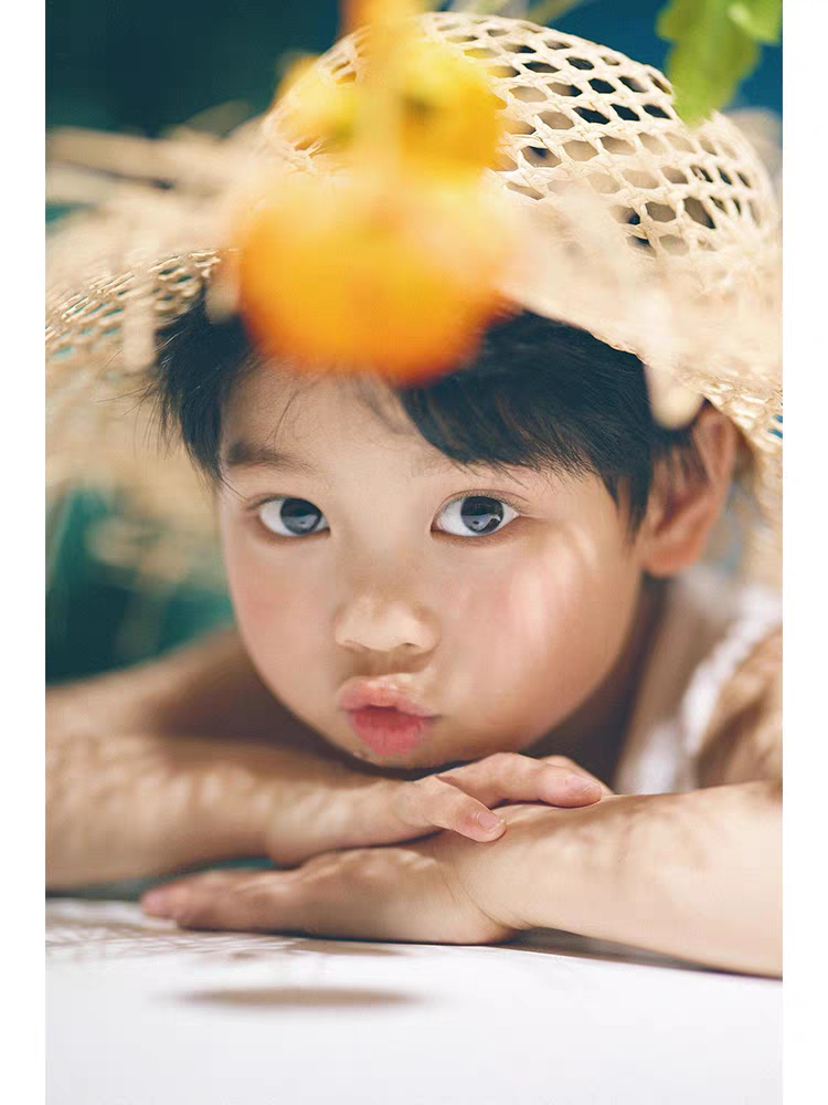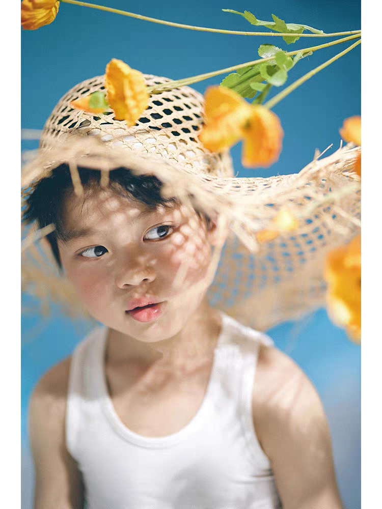 儿童摄影服装男童拉菲镂空草帽遮阳帽夏季影楼氛围感肖像拍照写真