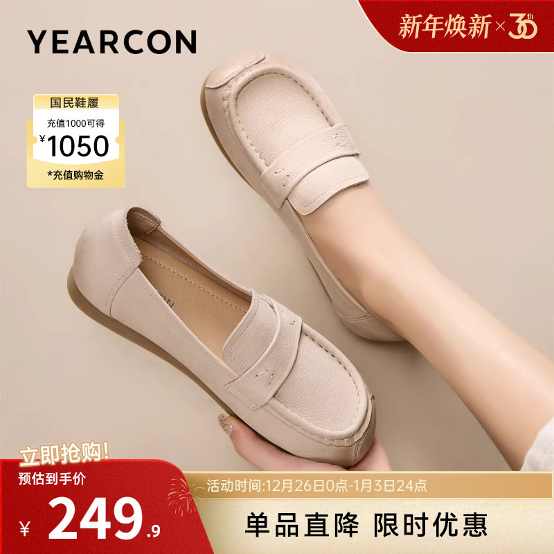 意尔康女鞋2025秋季真皮平底休闲皮鞋乐福鞋豆豆鞋妈妈单鞋护士鞋