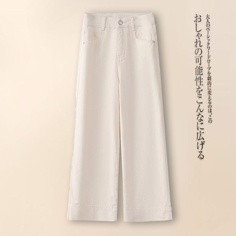 森柔牛仔|森马阔腿牛仔裤女2025秋冬白色牛仔裤简约女士高腰裤子