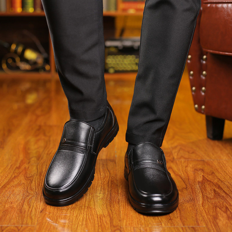 老人头男鞋冬季皮鞋男士中年商务休闲皮鞋真皮加绒软底舒适爸爸鞋