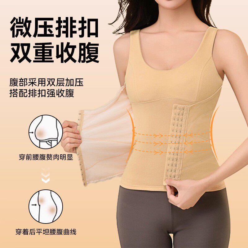 塑身塑形紧身美体保暖背心女士束腰收腹带排扣加厚秋冬季打底上衣