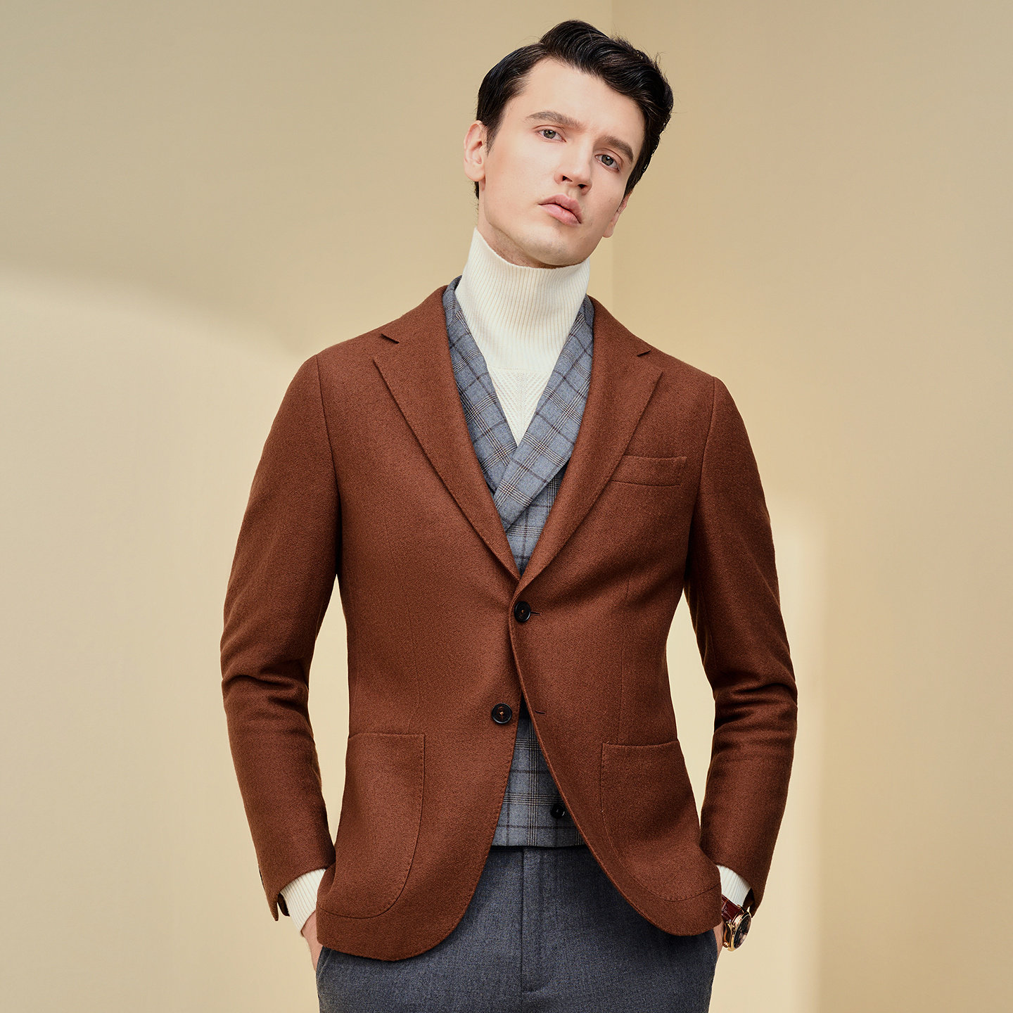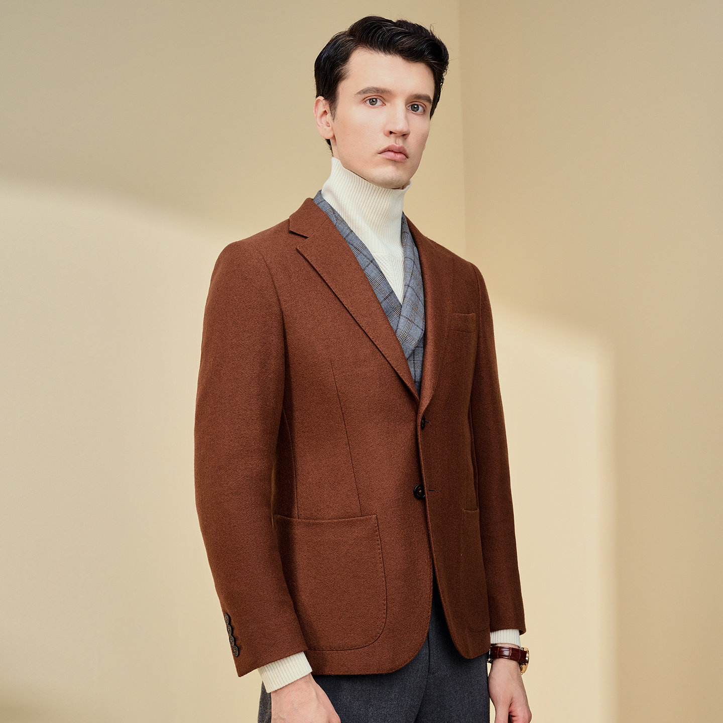 JODOLL乔顿咖色正装单西英伦商务休闲修身西服男绵羊毛小西装外套