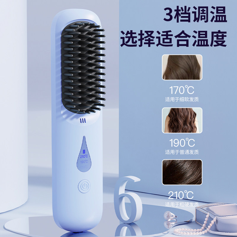 无线直发梳便携负离子不伤发直卷两用卷发棒蓬松直板夹卷直神器