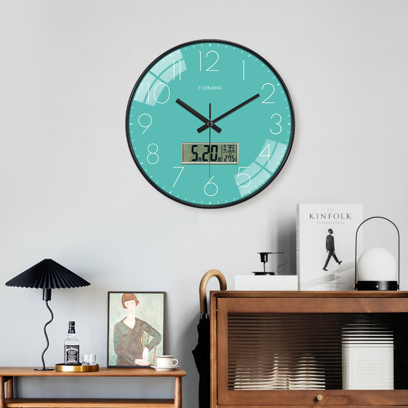万年历钟表挂钟客厅家用简约创意时钟挂墙时尚自动对时挂表免打孔
