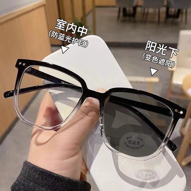 智能感光变色眼镜女近视可配度数超轻黑色高颜值素颜显瘦平光镜男