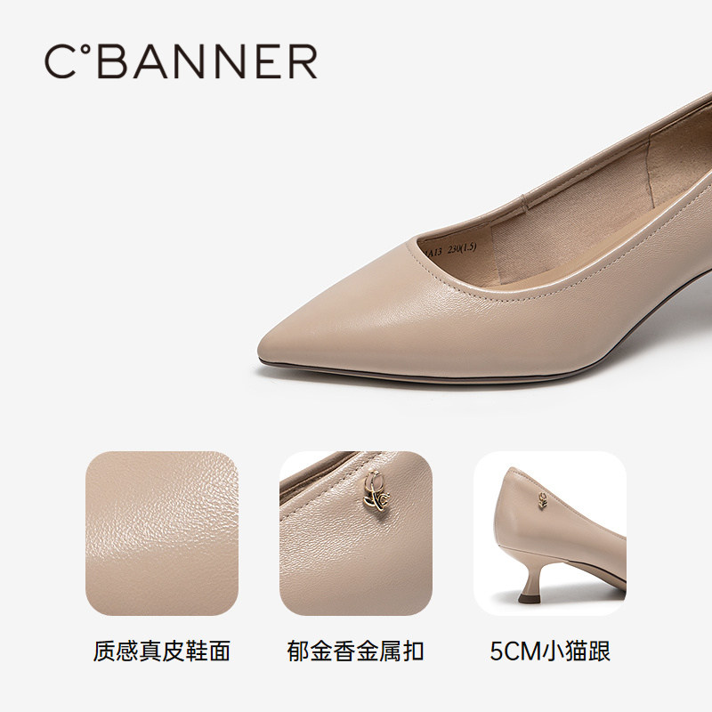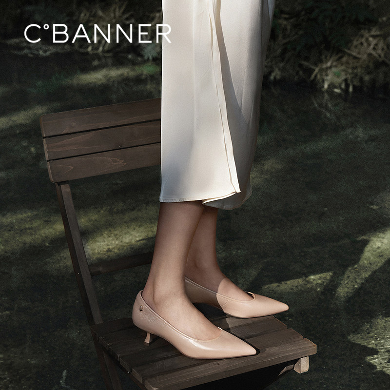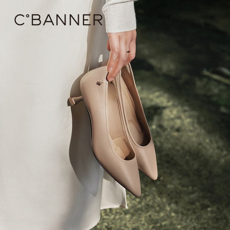【明星同款|静音系列】千百度练习曲裸色高跟鞋真皮通勤法式单鞋