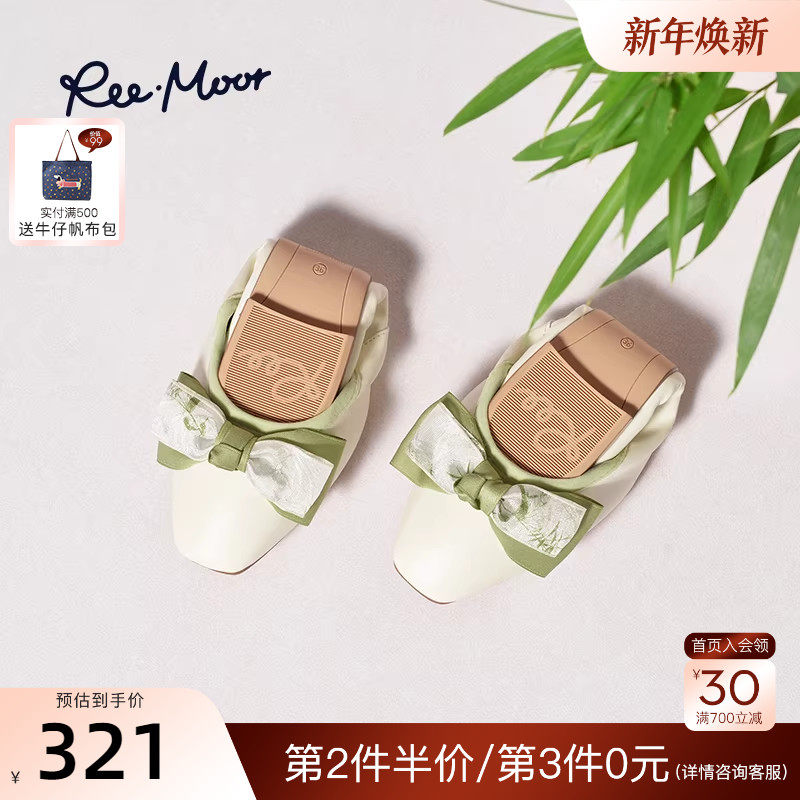 REEMOOR睿慕2025秋新款方头浅口单鞋女新中式芭蕾鞋一脚蹬女
