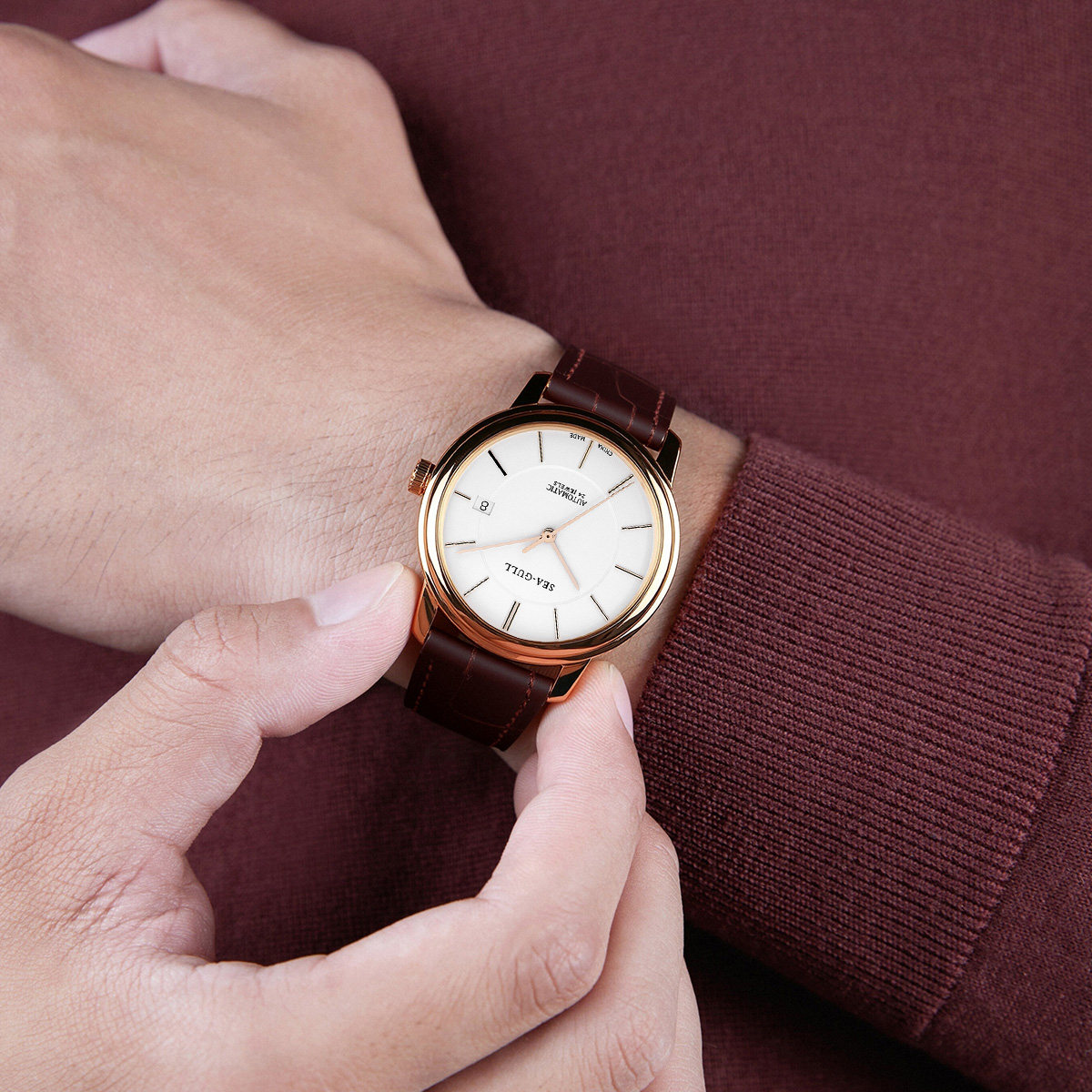 海鸥表手表男士简约皮带款单历男表自动机械表M201SG