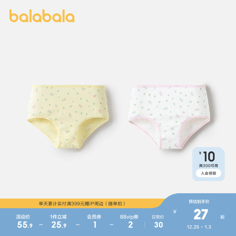 巴拉巴拉儿童内裤三角女童短裤棉中大童不夹PP两条装抑菌裆底亲肤