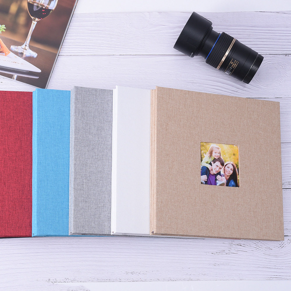 跨境麻布面开窗自粘覆膜相册家庭影集DIY粘贴式手工集邮相册现货