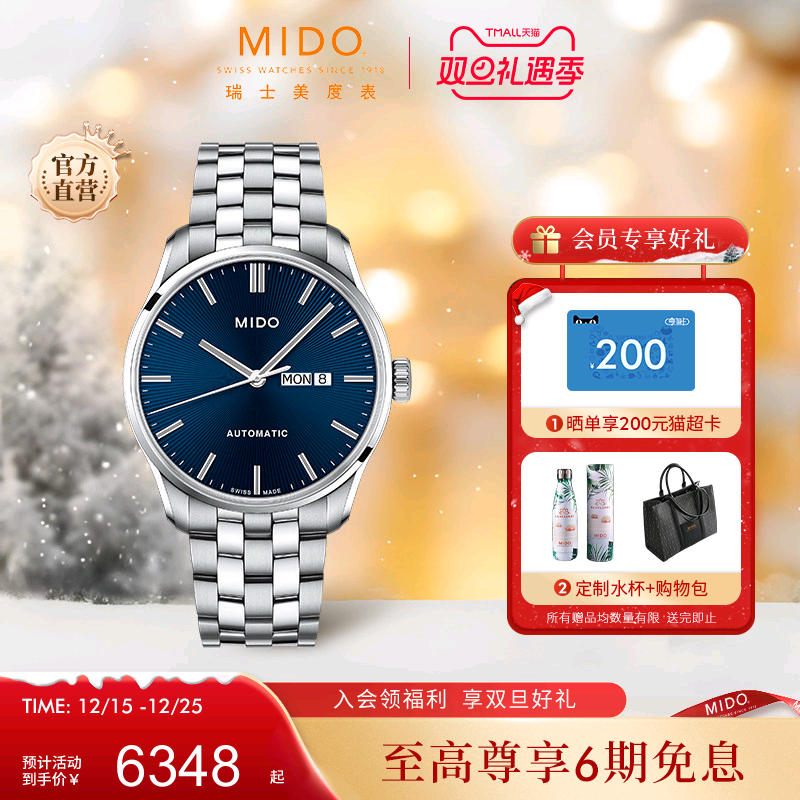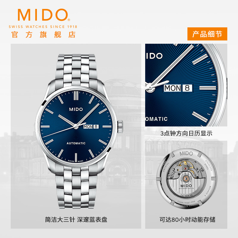 Mido美度手表男士布鲁纳系列休闲复古皮带腕表全自动机械表男款